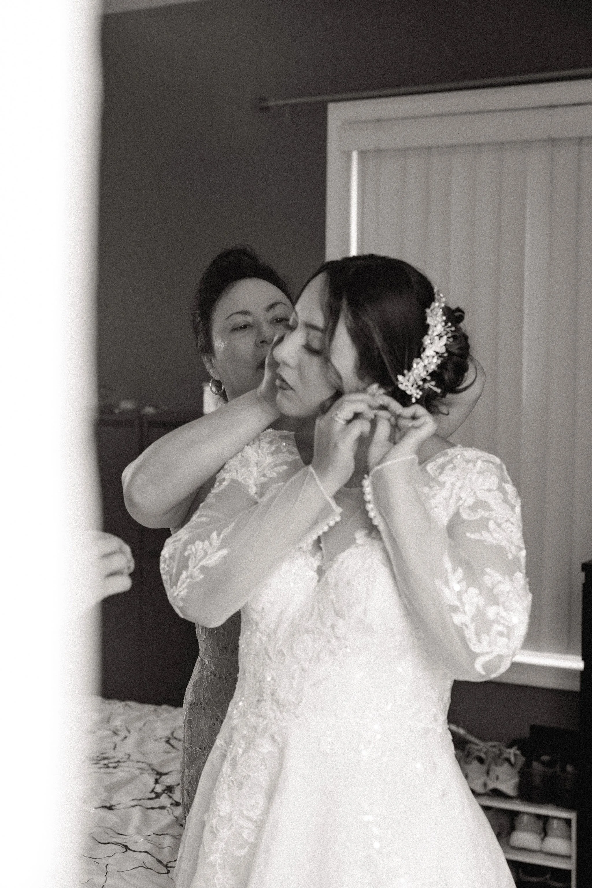 Bride and groom are getting ready at separate locations at the same time